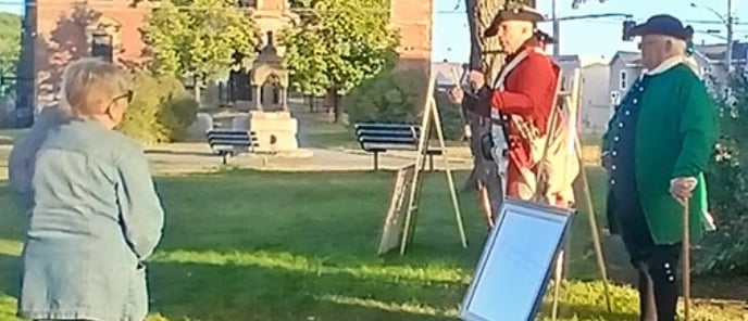 Members of DeLancey's Brigade, a Living History group based in Saint John, made a presentation on the August 1775 American privateer raid on the mouth of the St. John River, an early event in the Revolutionary War. This past August was the 250th Anniversary of this event.
